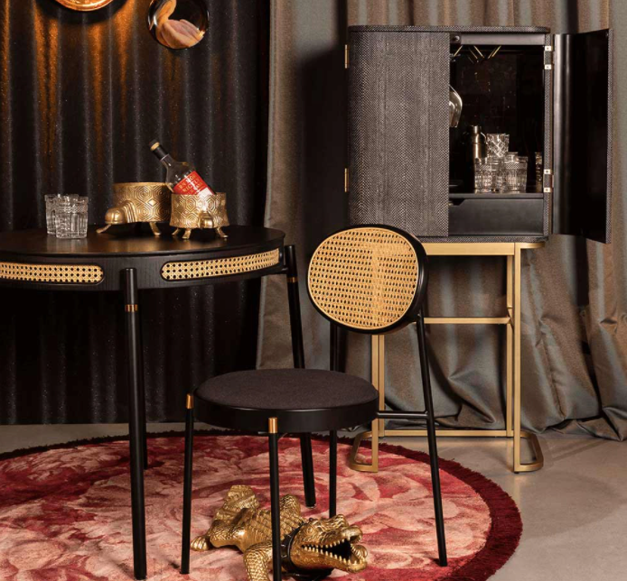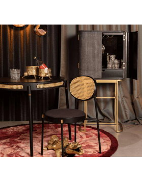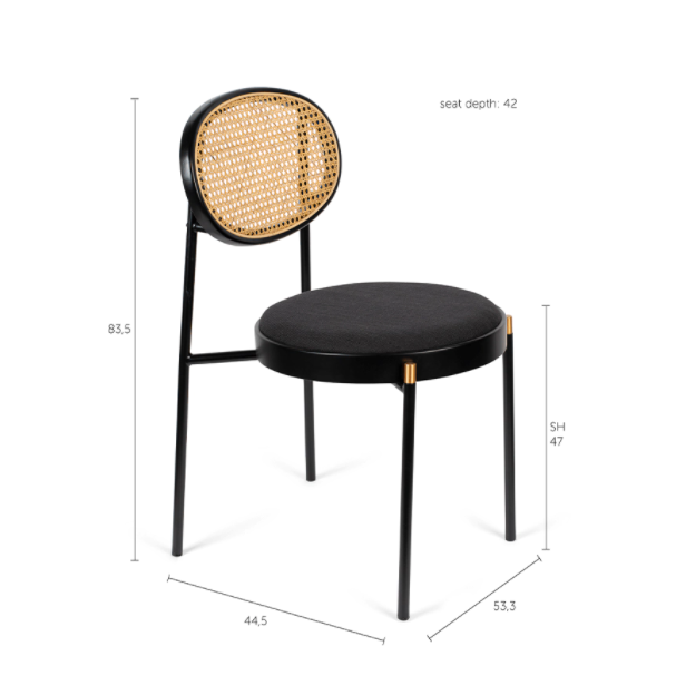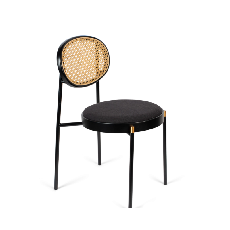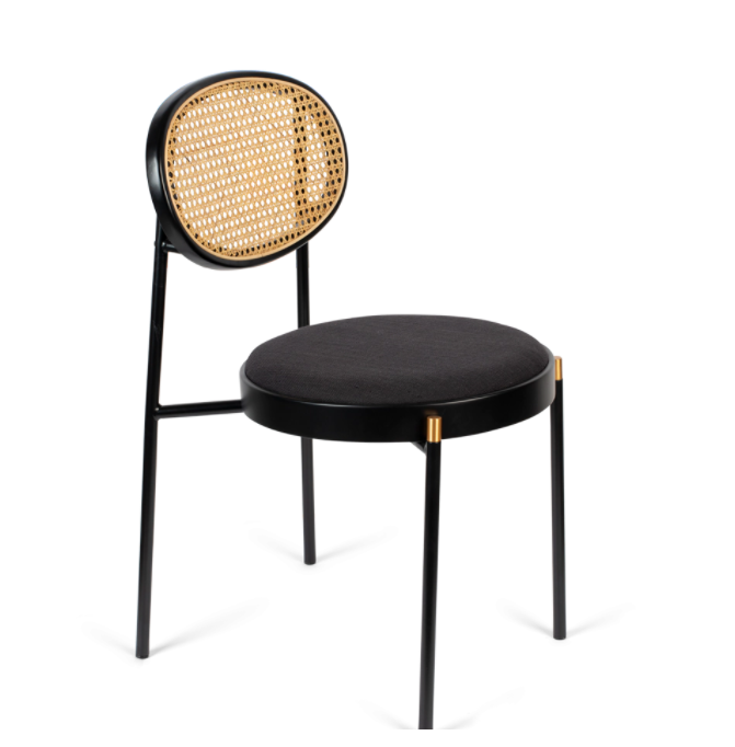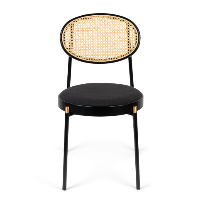 Mientras que la combinación del ratán retro con los bordes redondeados y suaves de la silla atraerá a los entusiastas de los muebles de mediados de siglo. Gracias a sus líneas limpias y detalles clásicos con acabado dorado, este es el tipo de silla de comedor que es bienvenida en una mesa de comedor.