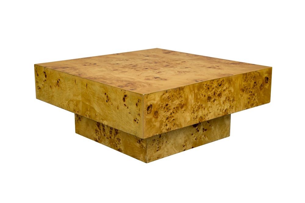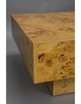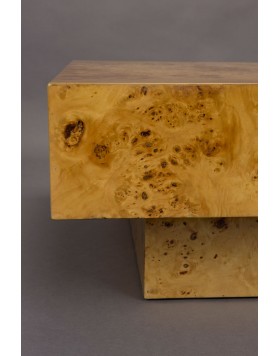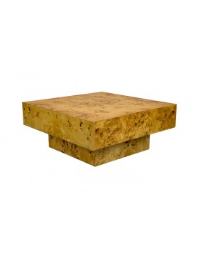 Esta mesa revive el encanto de los interiores de los años 70 , una pieza que destaca por su diseño audaz y su estética vintage. Su superficie en chapa de raíz de nogal muestra vetas únicas que, combinadas con la laca brillante, aportan un aspecto sofisticado y lleno de personalidad. El formato cuadrado añade fuerza visual y convierte esta mesa en un punto focal perfecto para cualquier zona de estar. Ideal para quienes buscan un toque distintivo y cálido que transforme la decoración.