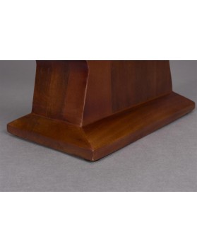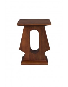 La mesa auxiliar Pilaster en acabado nogal destaca por su diseño escultórico y elegante. Fabricada en madera maciza de mango, presenta líneas inclinadas y un espacio central abierto que evoca la silueta de un reloj antiguo, aportando un encanto claramente vintage inspirado en los interiores de los años 50. Su tono nogal profundo añade calidez y carácter al ambiente, convirtiéndola en una pieza perfecta para decorar con una lámpara, una planta o cualquier accesorio que busque realzar el espacio.