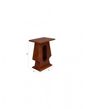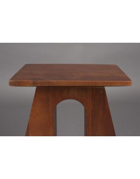 Mesa auxiliar de madera maciza de mango con acabado en nogal, diseño llamativo y estética vintage inspirada en los años 50. Aporta calidez y personalidad a cualquier habitación.