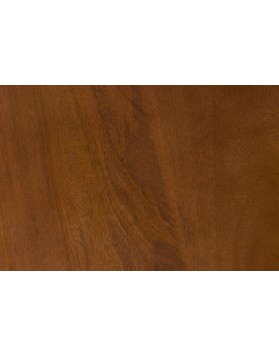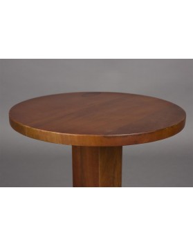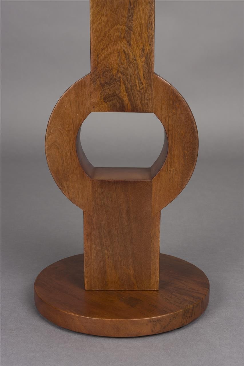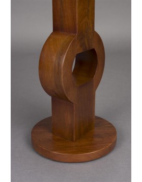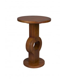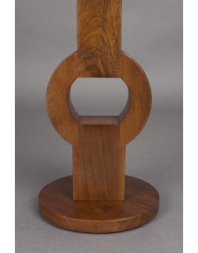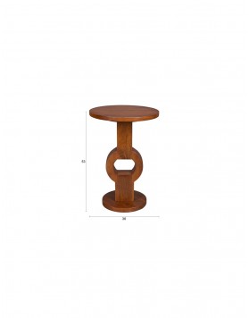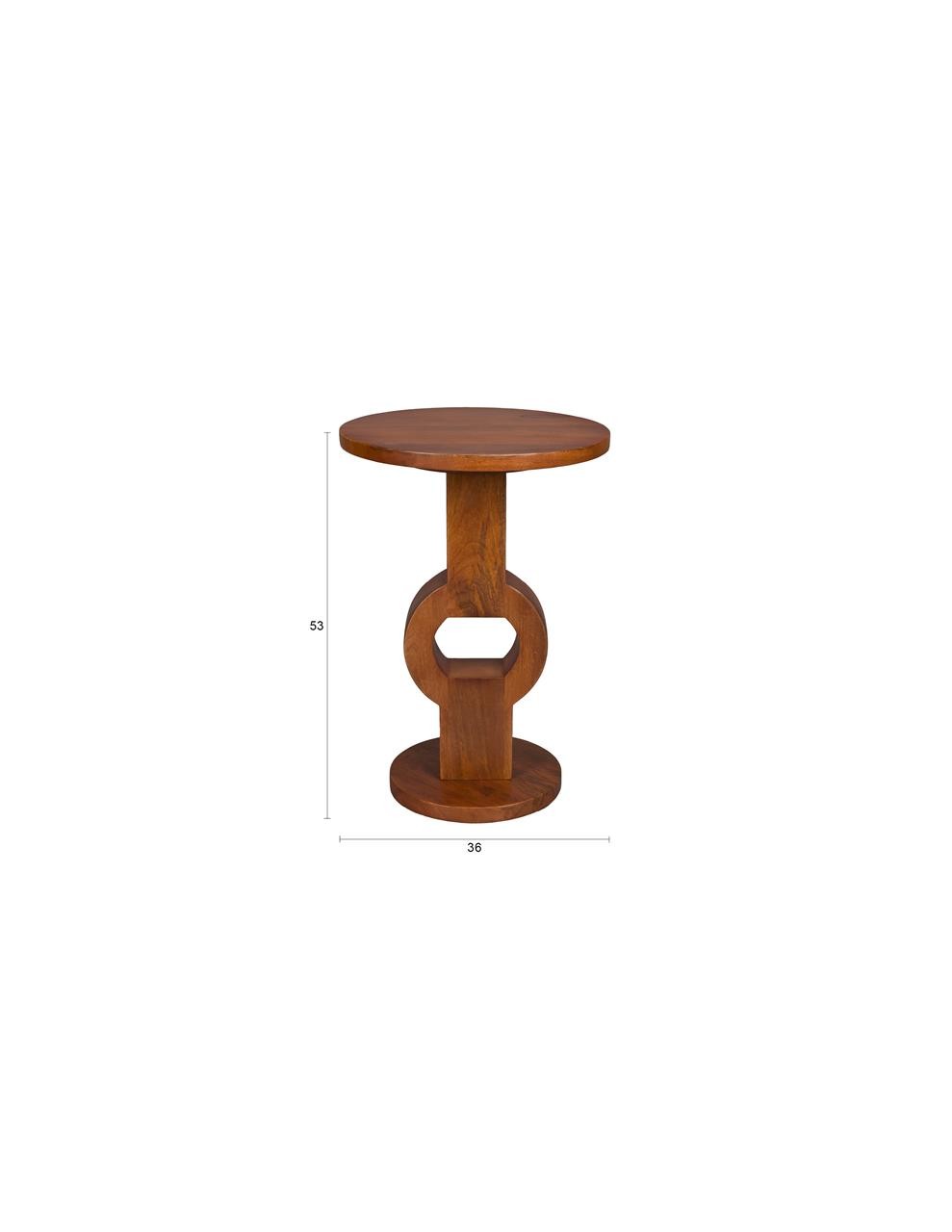 Mesa auxiliar de mango macizo con acabado en nogal intenso y pata central decorativa con forma de círculo. Inspirada en el estilo vintage de los años 50, destaca por su diseño distintivo y artístico. Añade calidez y personalidad a cualquier habitación.