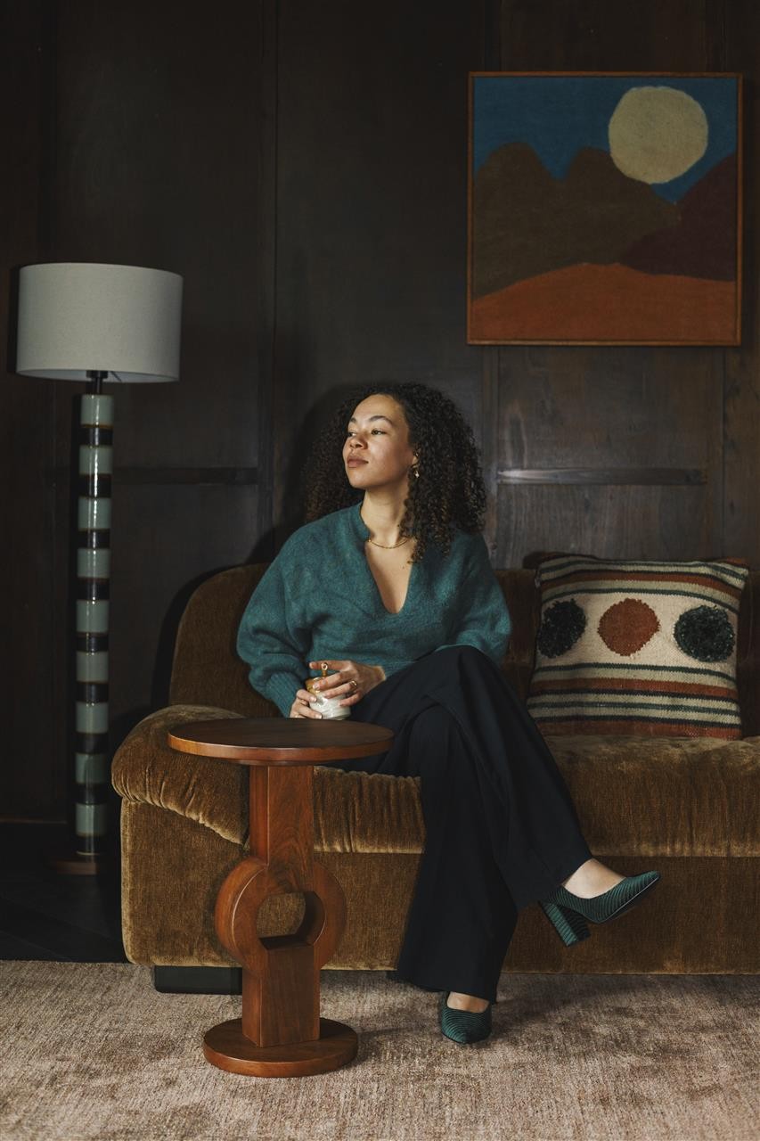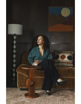 La mesa auxiliar Tondo en nogal destaca por su diseño único y lleno de carácter. Fabricada en madera maciza de mango con un acabado en nogal intenso, presenta una pata central muy llamativa cuyo círculo decorativo recuerda a una antigua llave, aportándole un aire distintivo y artístico. Inspirada en la estética cálida y vintage de los interiores de los años 50, esta pieza añade de inmediato un toque acogedor y elegante a cualquier habitación.