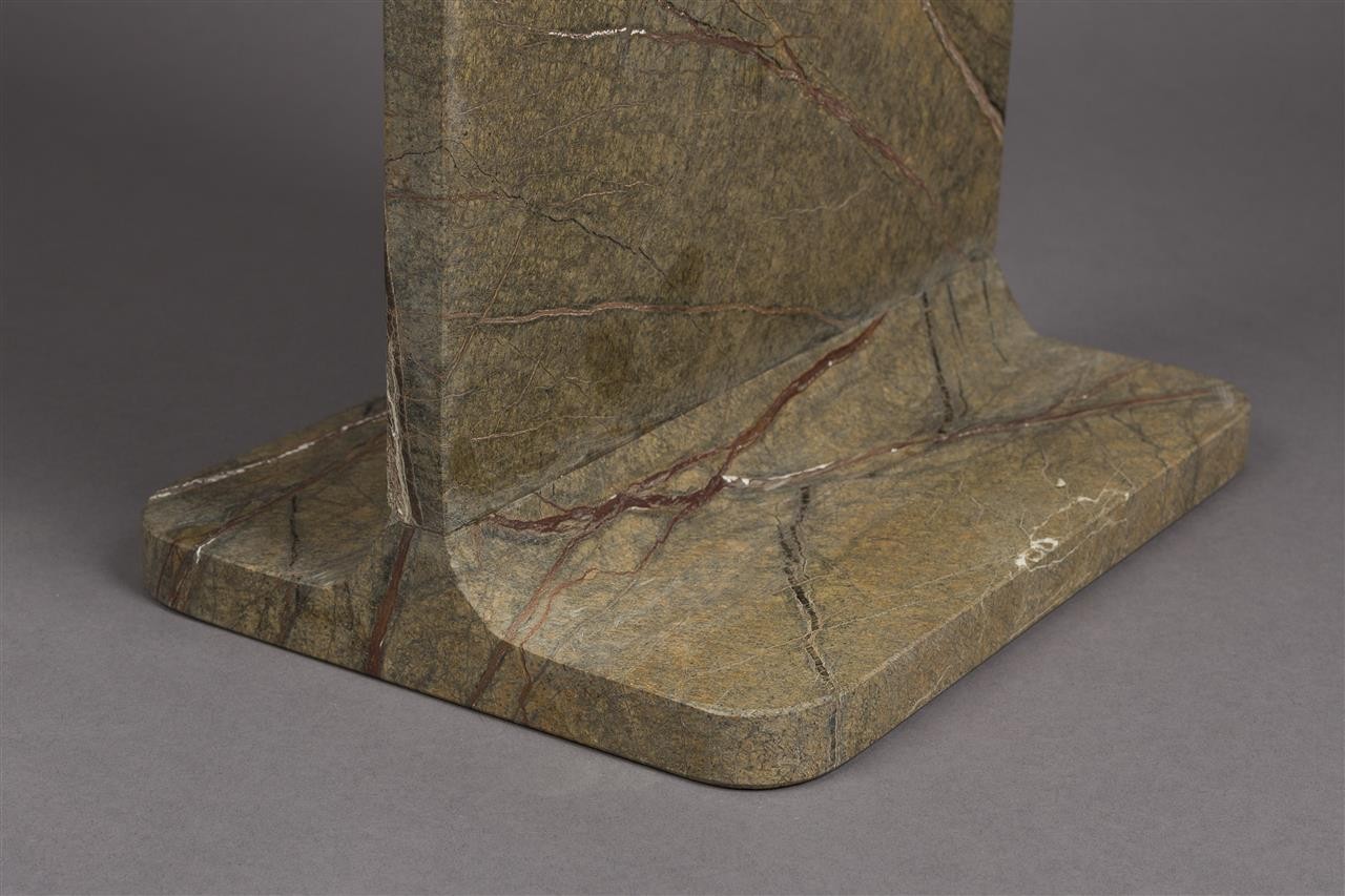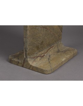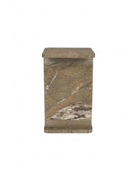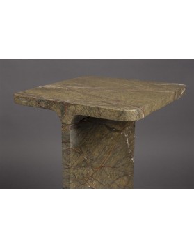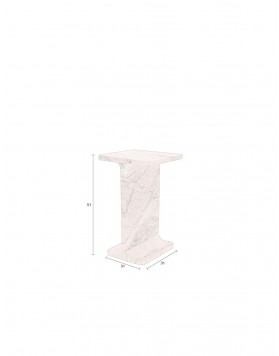 Mesa lateral de mármol con acabado natural y pequeñas imperfecciones que le dan carácter.