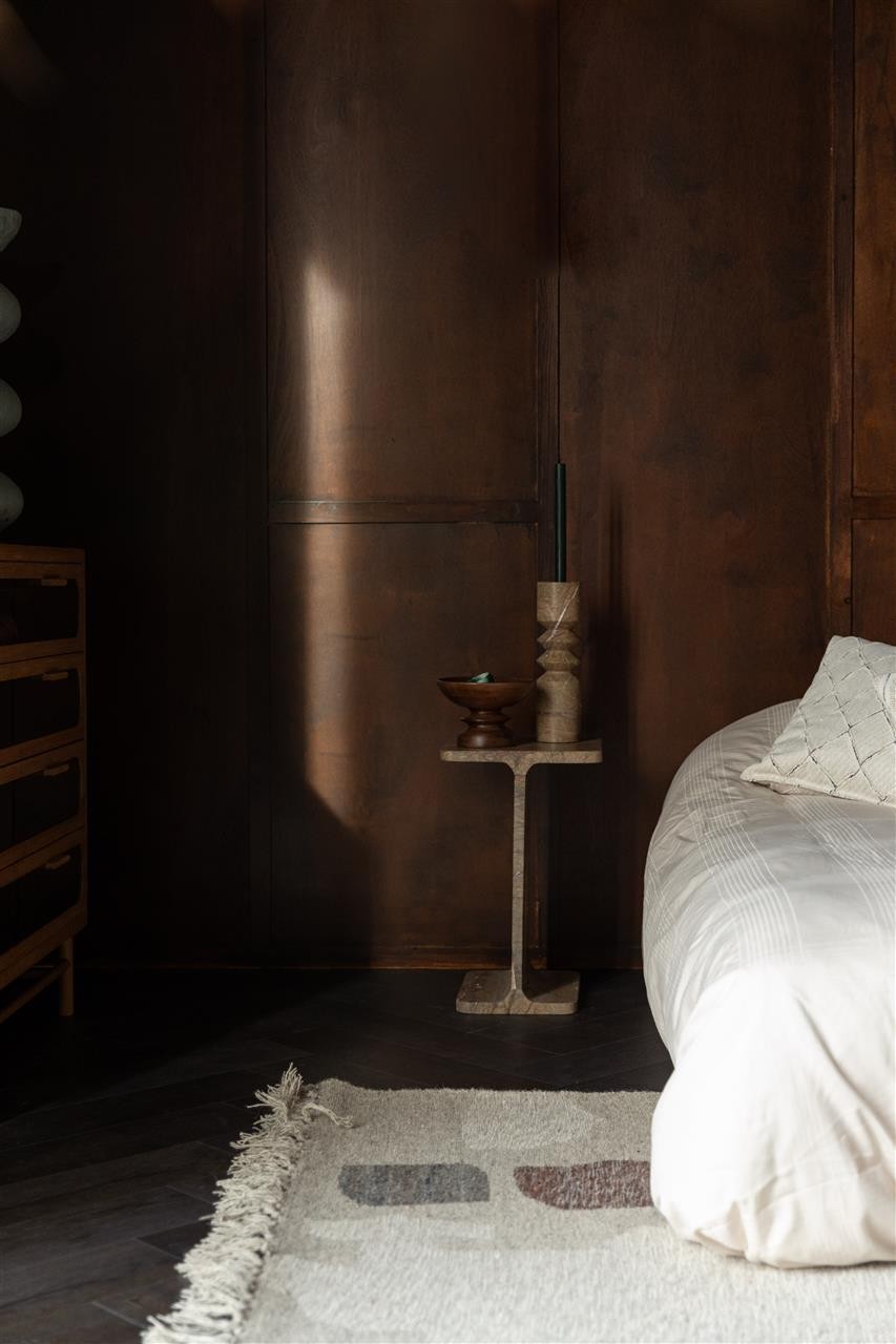 La mesa auxiliar Satpura en mármol marrón combina elegancia y funcionalidad. Fabricada en mármol natural, cada pieza presenta pequeñas imperfecciones que le confieren un carácter único y un aspecto cálido. Inspirada en los interiores de los años 50 y 60, aporta un toque vintage sutil a cualquier habitación. Ideal como mesa auxiliar, se puede combinar con otros accesorios Satpura para crear un rincón acogedor y con personalidad.
