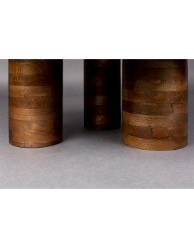 La colección Suki incluye un set de tres mesas auxiliares que combinan bases cilíndricas de madera maciza de mango con elegantes superficies de mármol auténtico. Su diseño orgánico y cálido transforma cualquier estancia en un espacio acogedor, pudiendo usarse juntas o por separado.