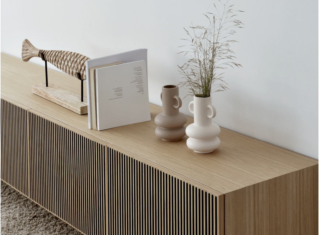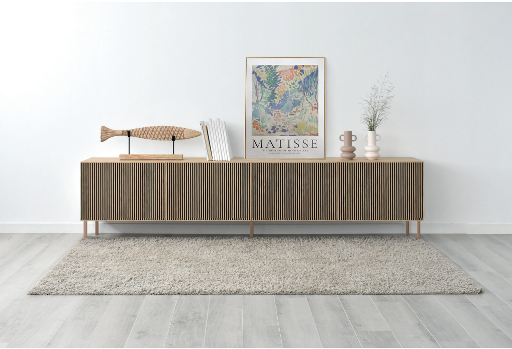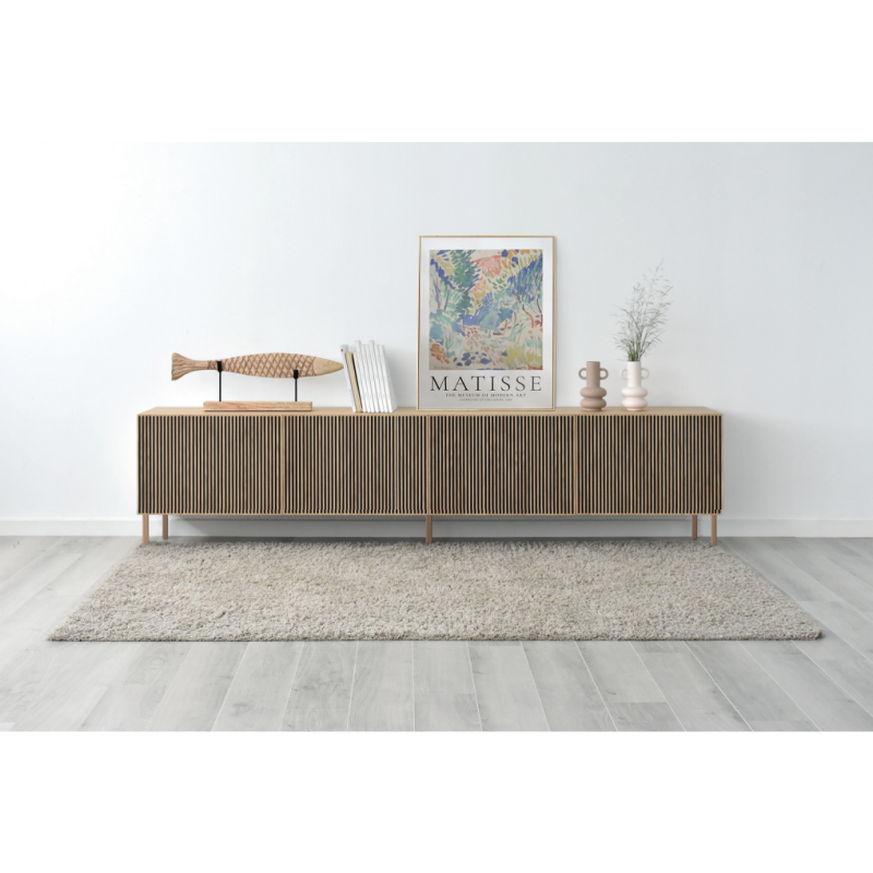 Crea con el mueble de TV Velka un rincón elegante y armonioso en tu hogar. Cada detalle refleja la naturalidad y sencillez del diseño escandinavo.