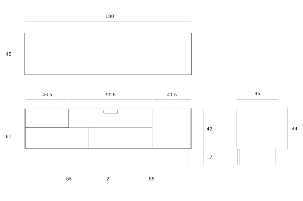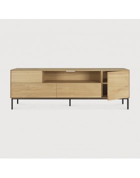 El mueble de TV Whitebird cuenta con 1 puerta de apertura a presión, 1 puerta abatible y 2 cajones de apertura a presión.