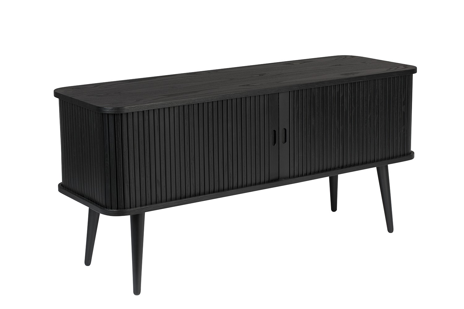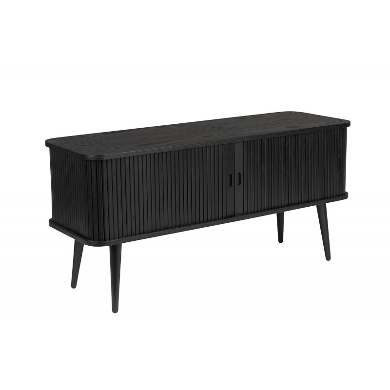 Un aparador, dos puertas correderas de persiana, dos baldas de cristal y mucha elegancia. Aporta calidez y feminidad a tu interior. Mira las puertas con sus delicadas líneas verticales. Deslízalas hacia atrás y surgen dos compartimentos en los que puedes guardar lo que quieras. Y eso incluye medios de audio y TV, porque el aparador Barbier tiene agujeros en la parte inferior y trasera.