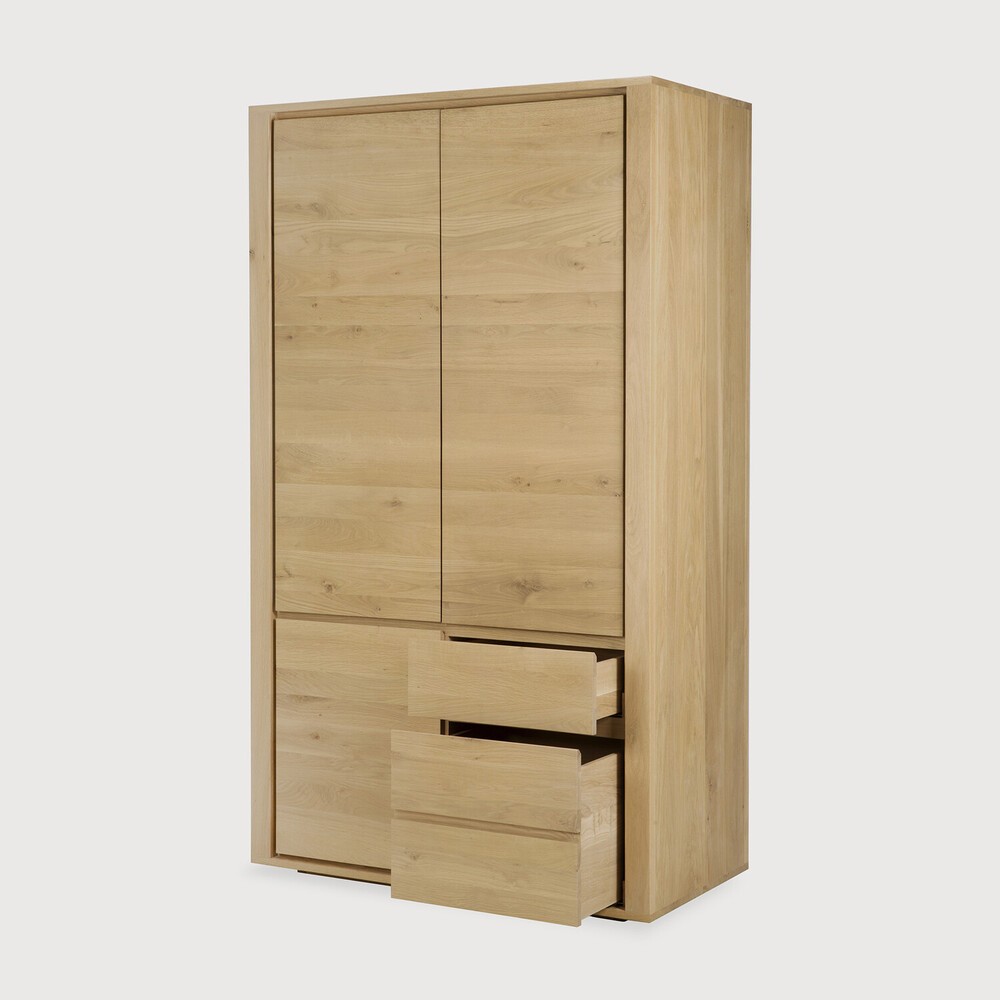 La cómoda Shadow destaca por su diseño duradero, elegante y funcional. Cuenta con tres puertas y dos cajones que optimizan el almacenamiento. Está fabricada en roble macizo con acabado aceitado que realza su veta natural. Pertenece a una colección distinta, pero mantiene la calidad artesanal de la marca.