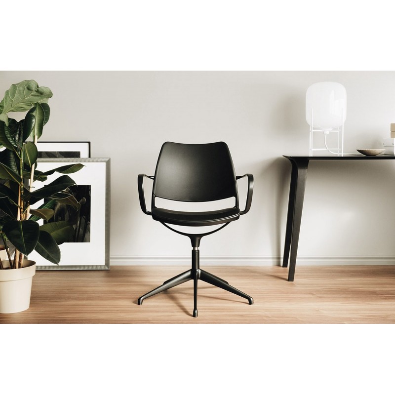 Giratoria tanto en las versiones con ruedas y auto-retorno. La silla Gas es para uso en interiores.