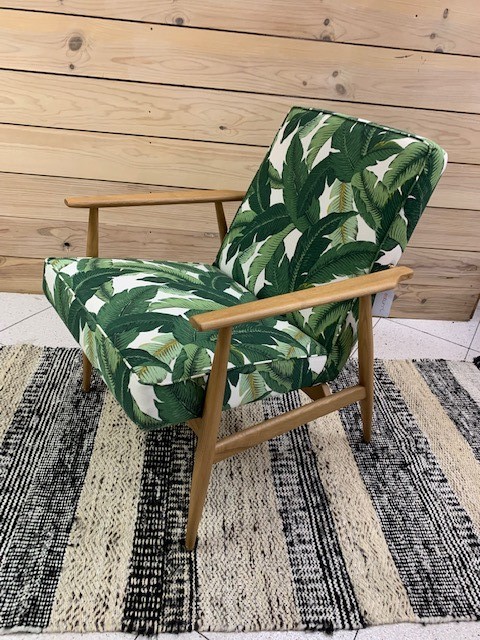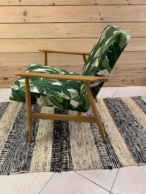 Butaca estilo nórdico, diseño años 60. Tapizada en madera maciza de haya.