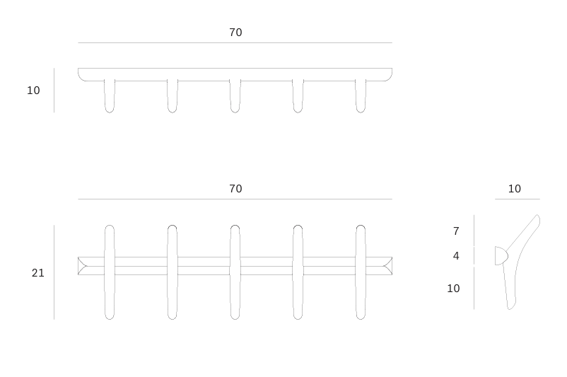 La colección PI hace honor al diseño de la naturaleza, manteniendo la fuerza, las curvas y las líneas, tal y como la naturaleza las concibió. Las formas interesantes se descubren en este acabado pulido imperfecto, elegante y con estilo. Cada perchero de pared PI está acabado a mano para garantizar que se respete el carácter individual de la madera.