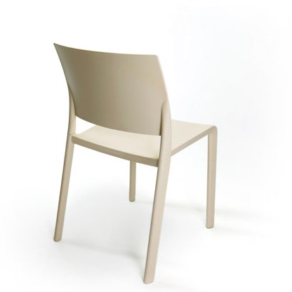 Silla realizada con inyección de polipropileno, válida para uso interior/exterior y apilable. Protección contra rayos U.V. Colores: naranja, crema, blanco, gris, verde y negro. Se vende en cajas de 4 unidades. El precio indicado es unitario.