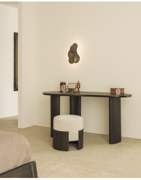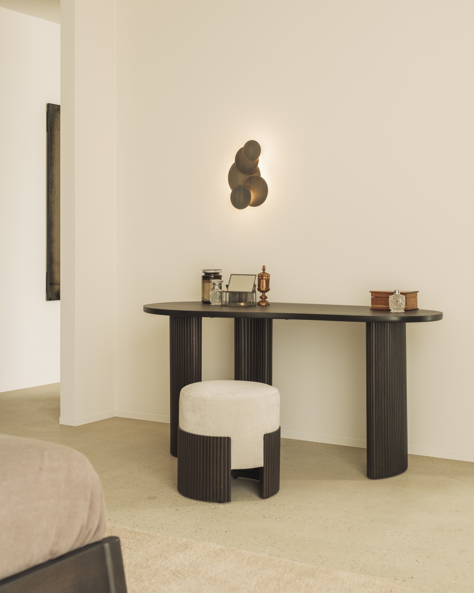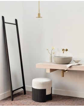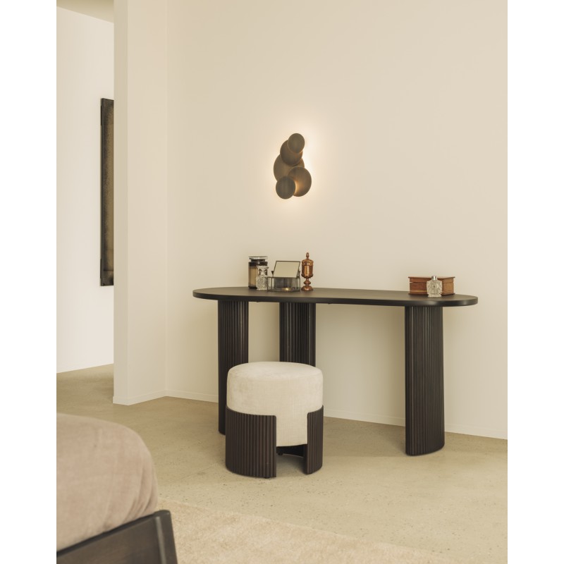 La colección Roller Max destaca por su diseño, distinguido por su efecto de palo de madera apilado. El puff es un elemento multifuncional que encapsula el cómodo cojín de tapicería dentro de la caoba barnizada marrón oscuro.