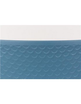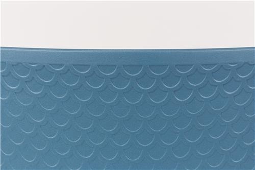 Silla ligera de carcasa de polipropileno con dibujo en relieve en la parte posterior y patas de hierro chapadas en madera. Disponible en blanco, gris verde y azul.