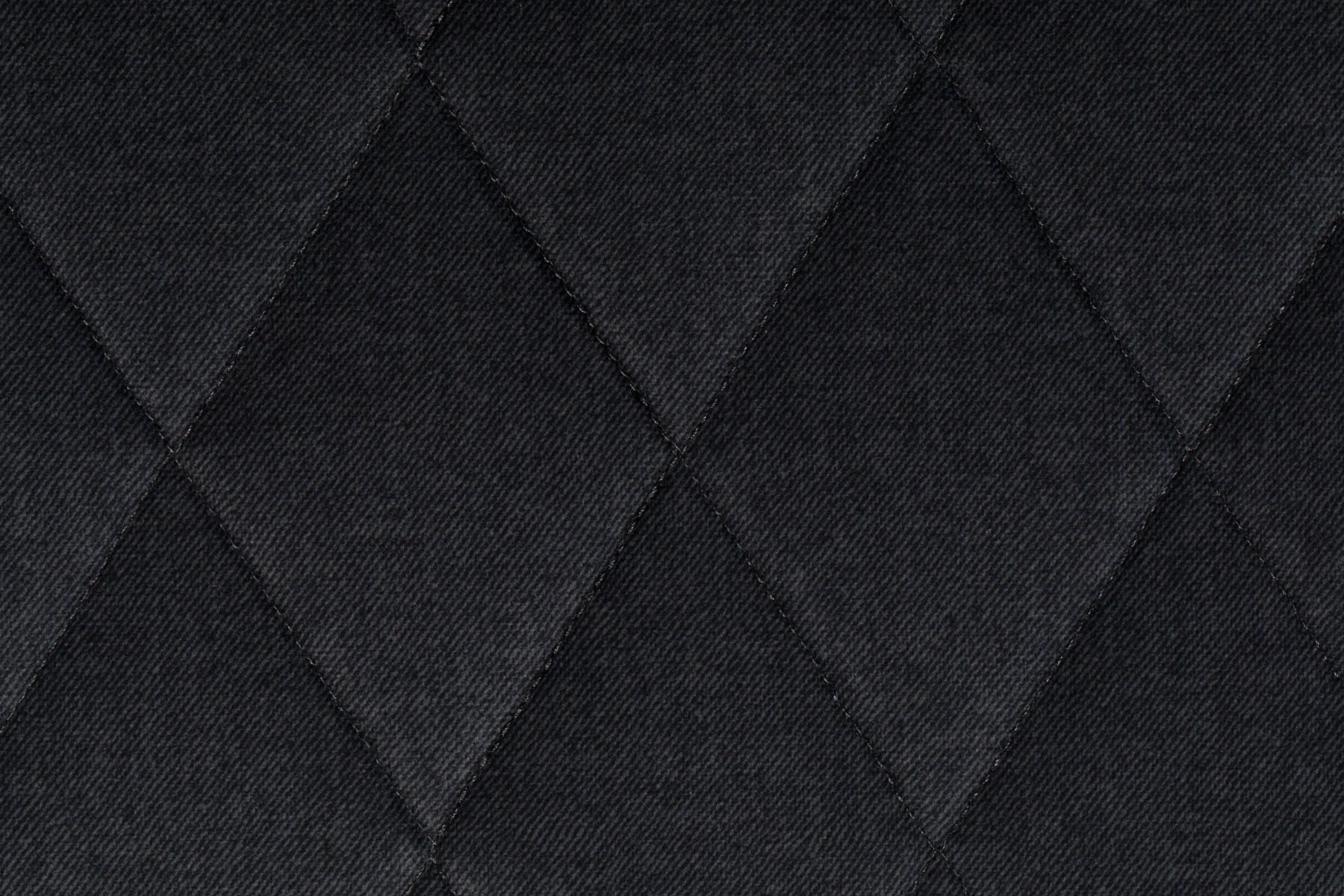 Respaldo y asiento en tejido cosido a diamante con ribete. Tejido: 100% poliéster,> 25.000 Martindale. Densidad de espuma asiento 30, respaldo 25. Estructura chapada en cobre con deslizadores
