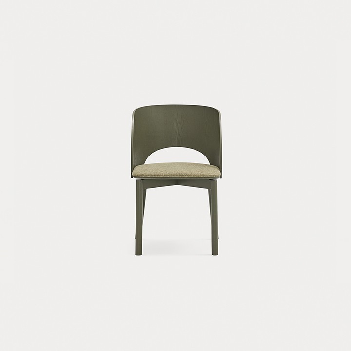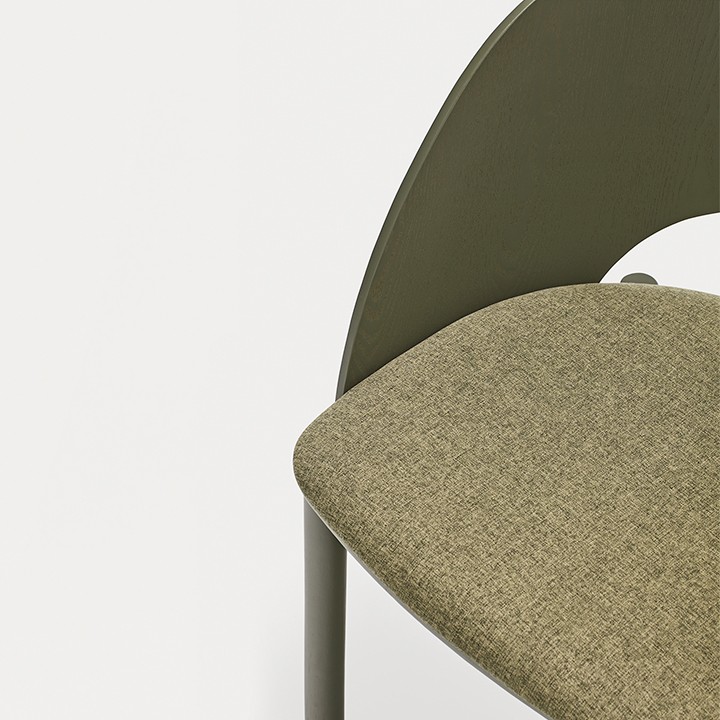 Materiales: Estructura y respaldo en contrachapado de fresno con acabados Natural claro, Negro, Azul oscuro, Verde oliva / Asiento tapizado 100% poliéster en acabados Gris claro, Negro, Azul marino, Verde oliva.