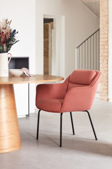 Cada línea en Dara ha sido cuidada hasta el último detalle con el fin de generar una pieza actual y con gran impacto visual. Buscando el máximo confort, la silla nos provoca la sensación de sentirnos completamente abrazados, invitándonos a relajarnos en ella gracias a su amplitud y su gran respaldo.