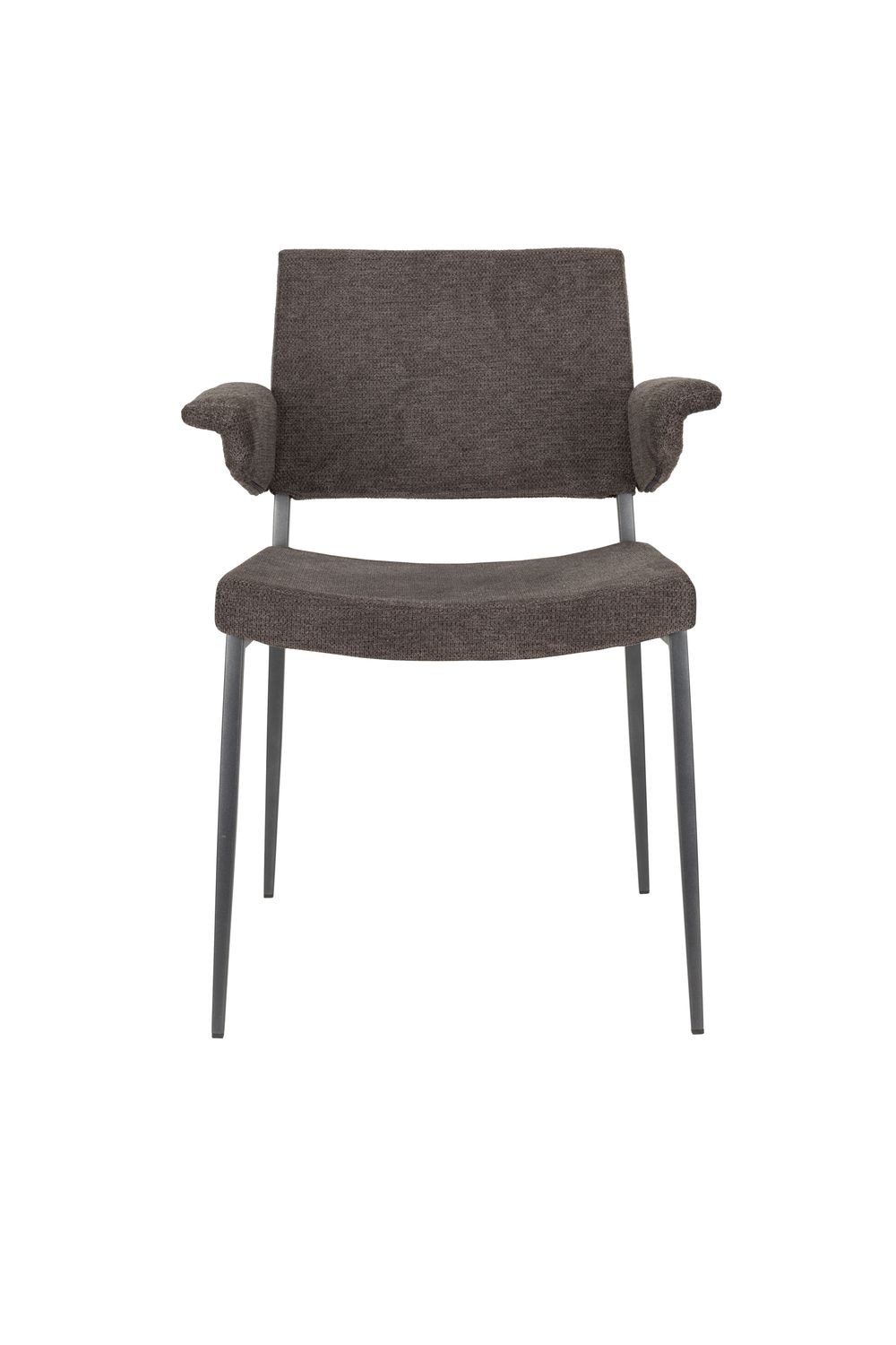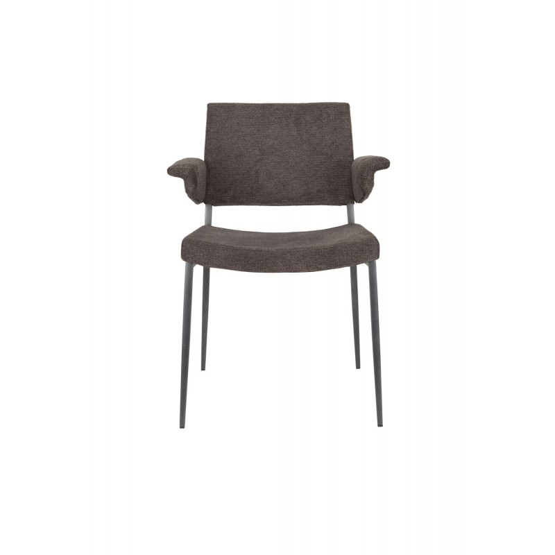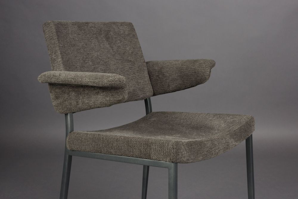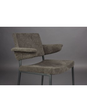 El contraste entre la tapicería de textura suave y tosca con el marco de metal de acabado antiguo crea una estética equilibrada, cálida y sofisticada. Disponible en varios colores, esta silla es perfecta para quienes buscan un toque retro sin renunciar al confort moderno.