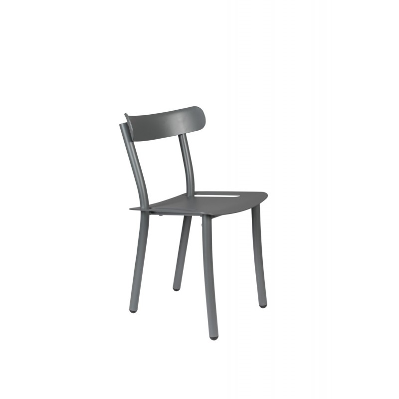 Fabricada íntegramente en aluminio sin mantenimiento. Las patas traseras atravesaran el delgado asiento y permite que se apilen hasta cuatro piezas.