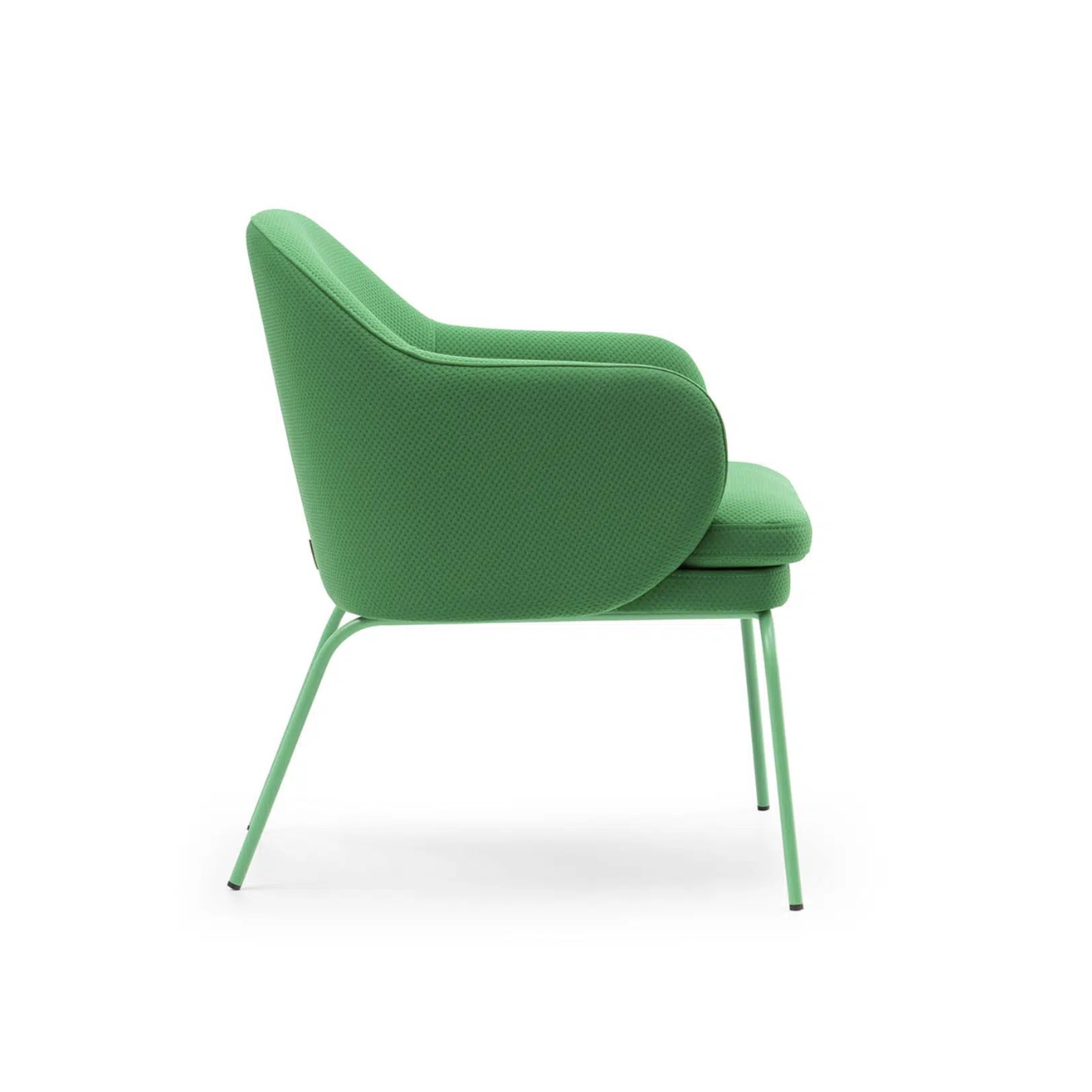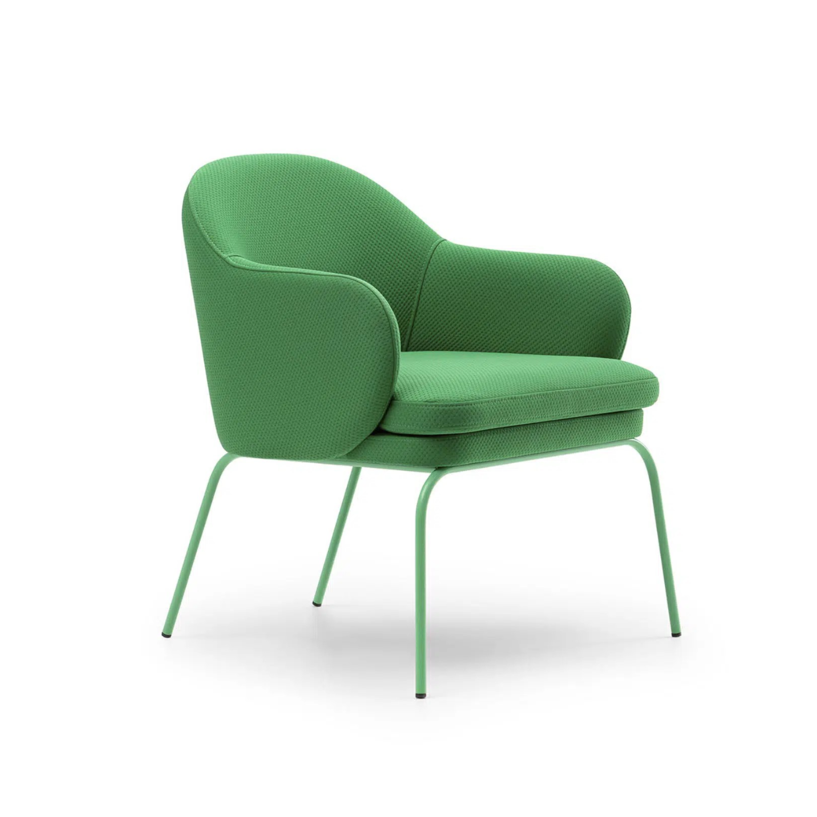 Descubre el sillón de diseño orgánico que ofrece una experiencia envolvente de confort y bienestar. Su estética moderna y nórdica destaca por sus formas suaves y volúmenes redondeados, creando un ambiente acogedor y de protección. Las patas de acero tubular aportan ligereza y elegancia, realzando la frescura de este modelo único.