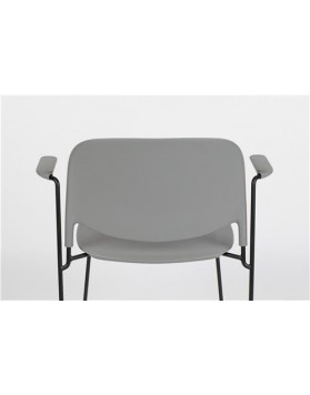 El sillón Berry está fabricado en polipropileno reforzado con fibra de vidrio con acabado mate. Su estructura en acero con recubrimiento en polvo y deslizadores de plástico. Apilable hasta 10 piezas