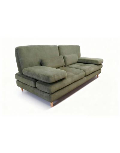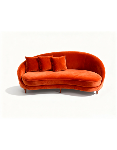 Diseñado con patas de madera y un diseño característico.