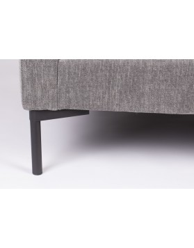 Tapicería de tela mixta (65% poliéster, 35% acetato). Espuma de poliuretano de alta elasticidad, densidad 35. Suspensión sin hundimiento.Estructura de madera mixta (aglomerado, tableros duros, madera contrachapada). Patas de acero con recubrimiento en polvo. Cojines con fundas extraíbles. Carga máxima de peso : 360 kg.