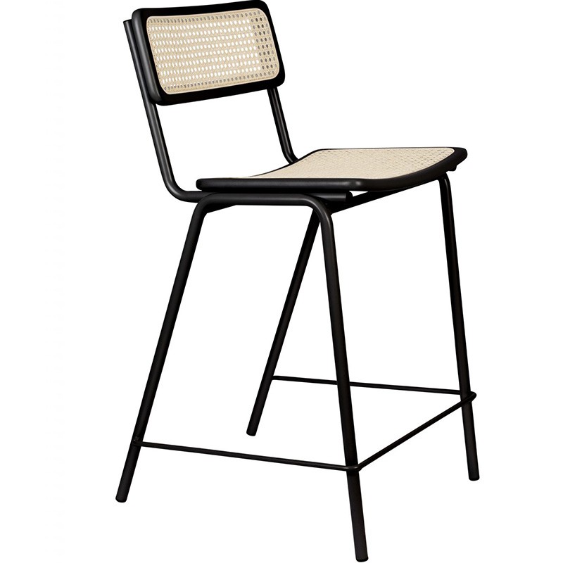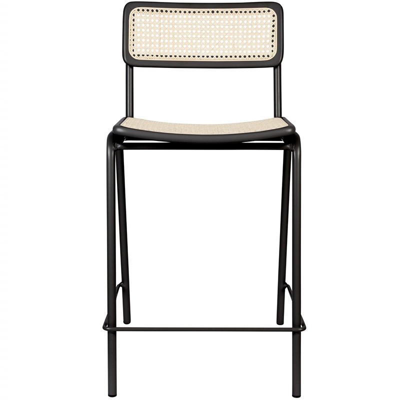 Asiento y respaldo de ratán natural. Estructura de madera maciza de haya lacada. Patas de acero pintado en polvo con tapas de plástico. Peso máximo de carga: 125 kg