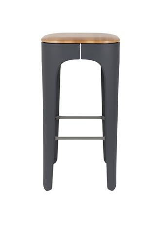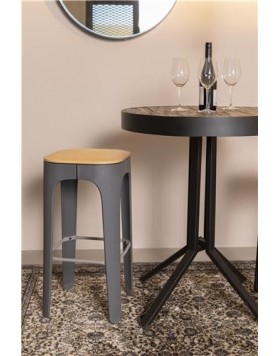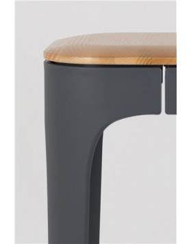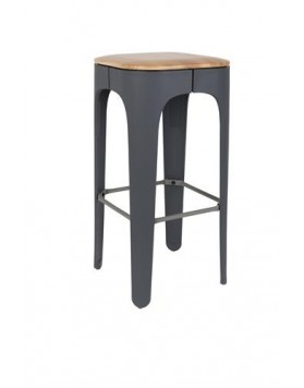 Kenton es un taburete alto para bar de estilo industrial, el cual está fabricado con asiento en madera maciza de fresno, patas de polipropileno y reposapiés de acero.