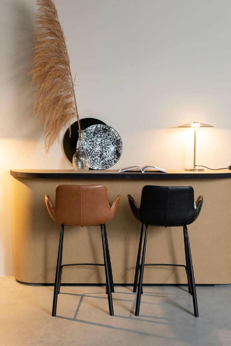 Los polos opuestos se atraen y el taburete Brit nos lo demuestra, fíjate en el contraste entre el elegante asiento y las robustas patas industriales de acero negro.