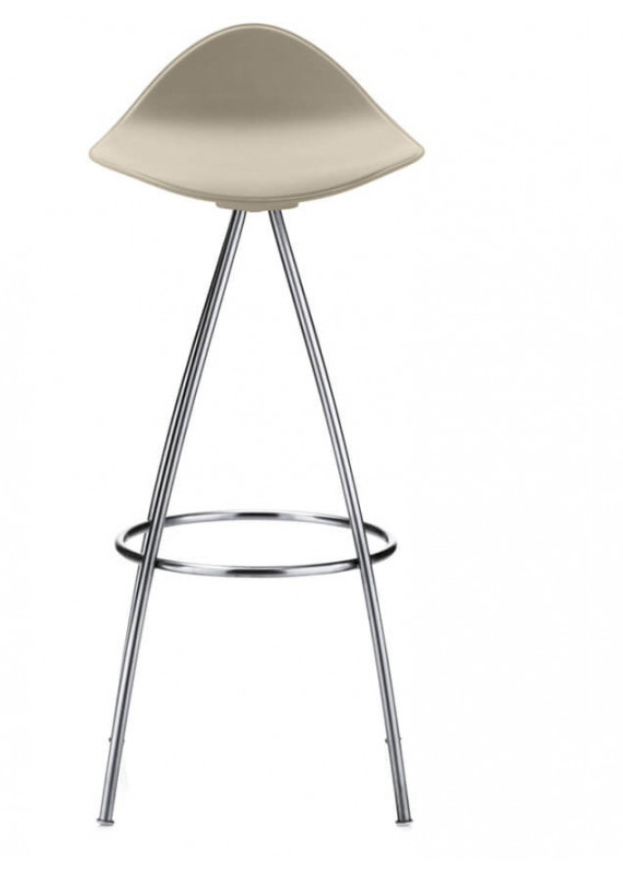 Las cuatro patas parten del centro del asiento desplegándose con suaves curvas hasta formar una base estable. El asiento del taburete tiene una "piel" extra, de una goma blanda (excepto en color blanco) y un pequeño respaldo que proporciona un notable apoyo lumbar logrando que el confort de las formas sea total.