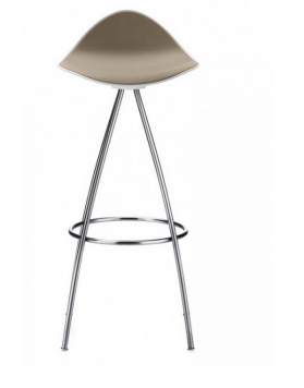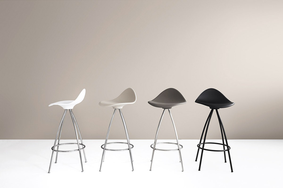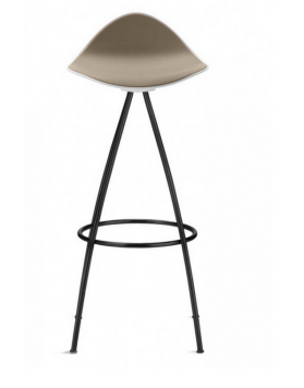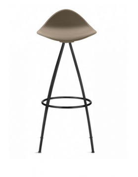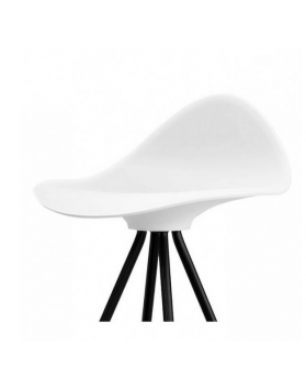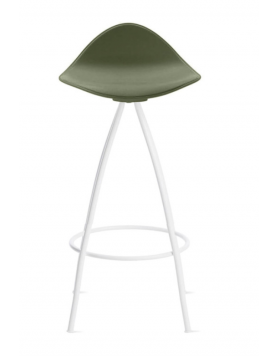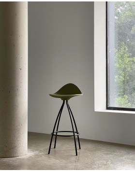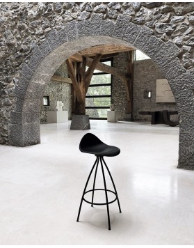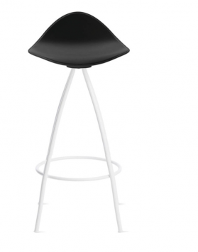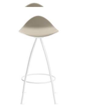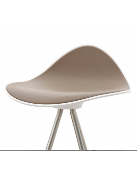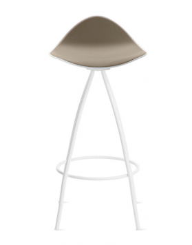 Las cuatro patas parten del centro del asiento desplegándose con suaves curvas hasta formar una base estable. El asiento del taburete tiene una "piel" extra, de una goma blanda (excepto en color blanco) y un pequeño respaldo que proporciona un notable apoyo lumbar logrando que el confort de las formas sea total.