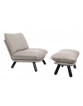 Tapicería en cuero de PU vintage o tela de poliéster, relleno de espuma de PU, densidad 30-35. Estructura de madera contrachapada. Patas de haya maciza, recubrimiento de polvo negro mate. Tumbona: Peso máximo: 100 kg. Dimensiones: 75x94x81 cm (AnxPxA). Altura del asiento: 46 cm. Profundidad del asiento: 54 cm