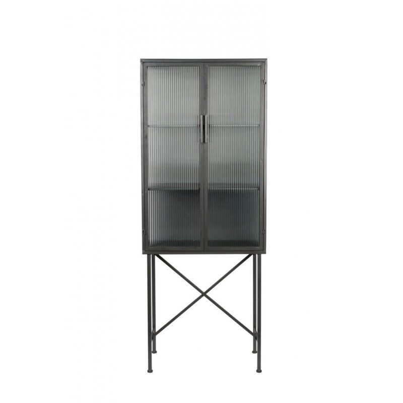 Vitrina de hierro con recubrimiento en polvo. Puertas de hierro recubiertas de polvo con cierre magnético y ventanas de vidrio templado acanaladas. Dos estantes fijos.