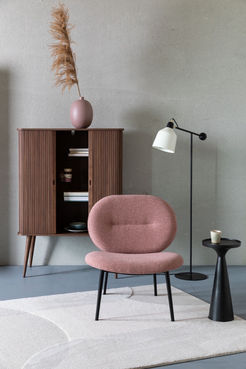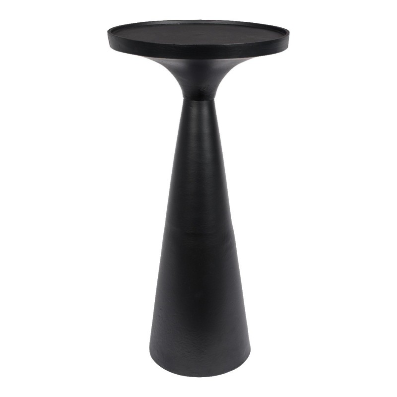 Mesa de aluminio fundido con recubrimiento en polvo en blanco, negro o gris. Peso máximo de carga: 5 kg. Dimensiones: 28 × 56 cm (Ø x H)
