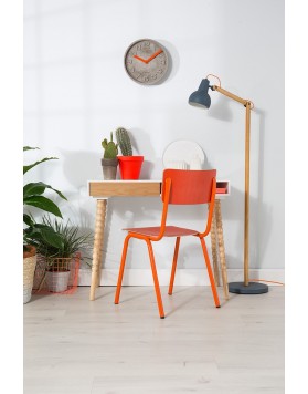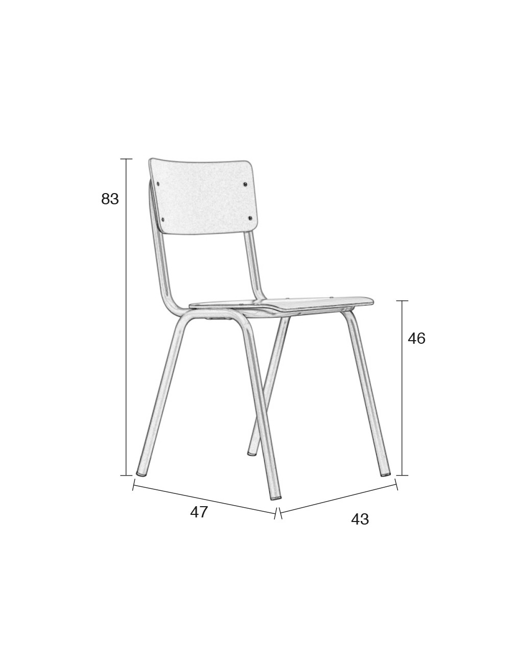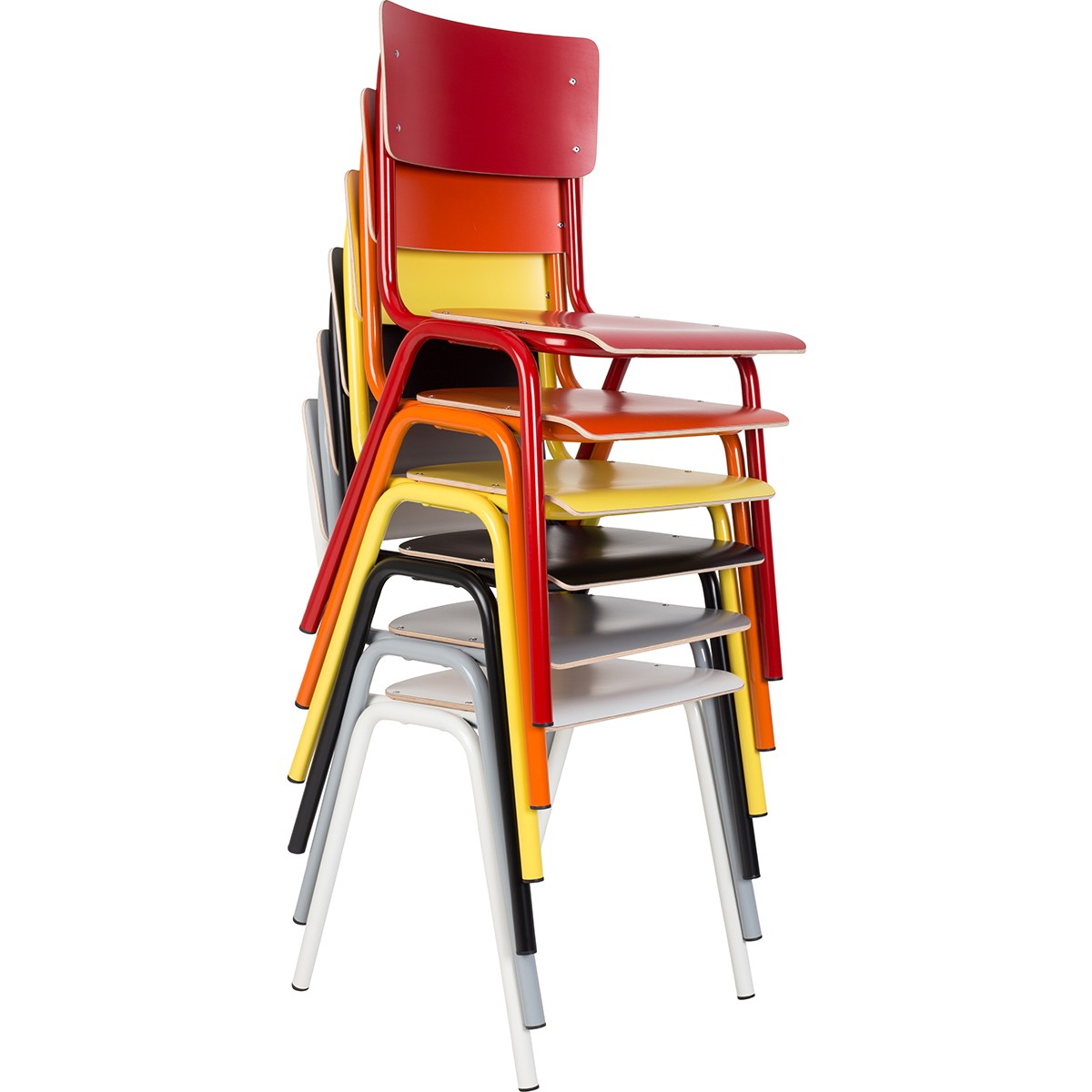 Silla de estructura metalica lacada en varios colores y carcasas de contrachapado con HPL en colores disponibles, blanco, negro, rojo, naranja, amarillo y gris. Apilables. Pedido minimo 4 unidades. Medidas: 43 ancho x 47 fondo x 83 alto cm.